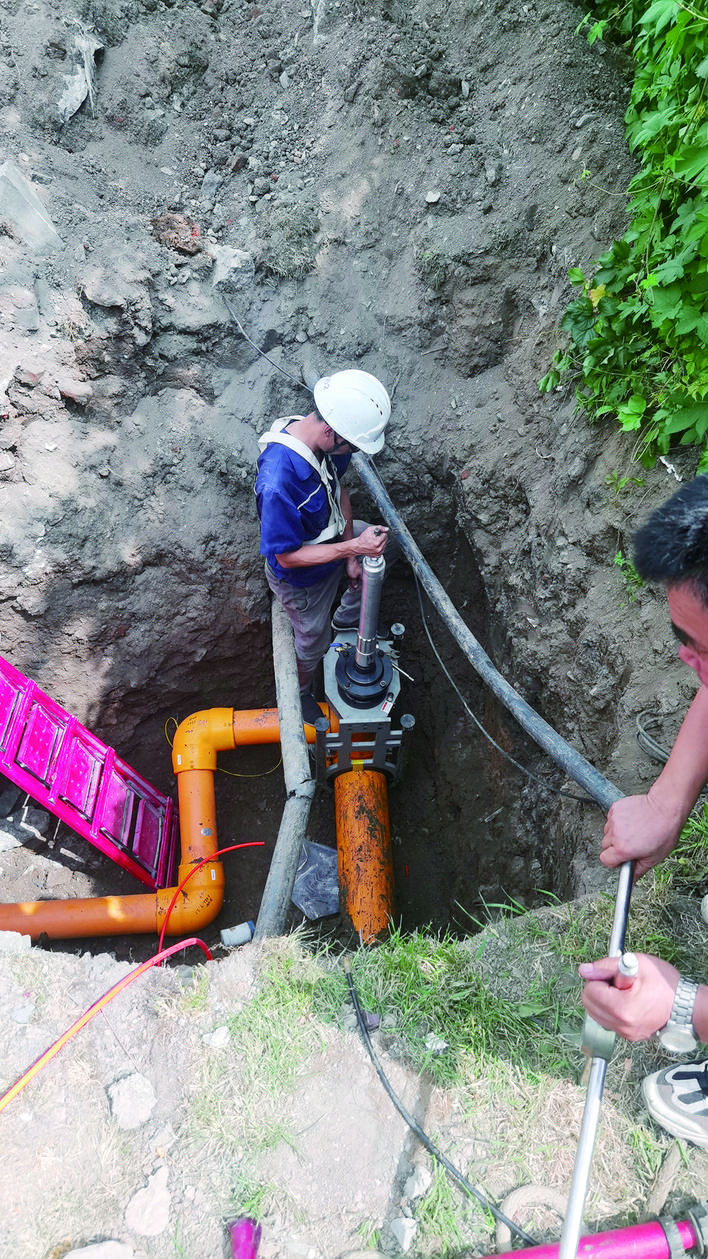 經(jīng)開區(qū)觀天下二期項目用水工程從報裝到通水僅用了40分鐘。圖為工作人員打開水管閥門?!绑@喜!”20日, 上午,在經(jīng)開區(qū)觀天下二期項目的工地.上,吉林富騰集團(tuán)房地產(chǎn)開發(fā)有限責(zé)任公司總經(jīng)理助理陳中秋看著水管里冒出的水流,高興得合不攏嘴。